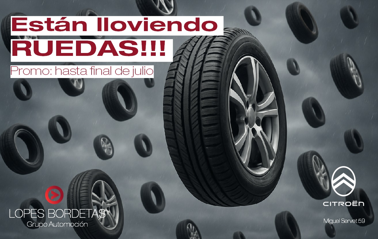 En Lopes Bordetas y de la mano de Citroën, están lloviendo ruedas y con ellas, un buen número de regalos. Descuentos, regalos y tarjetas de combustible. No dejes pasar esta oportunidad. Pásate por C/Miguel Servet 59 y te contamos. Este verano, estrenarás neumáticos y te llevarás un fantástico regalo.